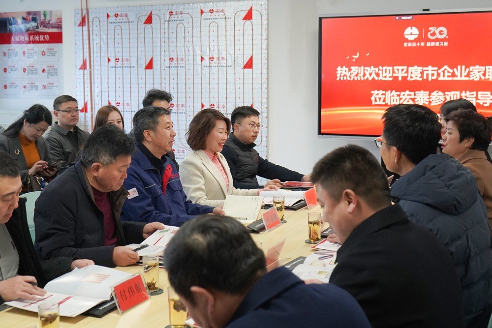 2月18日上午,由中共平度市企業家聯盟會支部委員會書記陳文增、執行秘書長張淑香帶隊40余位會員企業家共同走進理事單位宏泰銅業進行對標探訪交流。