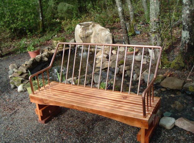 銅管桌子說完了,再說說椅子,看到上圖,各位讀者未免懷疑這板凳的穩(wěn)定性,如果你親自用手彎一下外徑35mm,壁厚且2mm的銅管,相信你再也不會擔(dān)心這板凳的承重能力,銅管可按照自己的想法切割,但是事先得設(shè)計好圖紙,用銅管設(shè)計最重要的是要考慮連接處的穩(wěn)定性,以銀焊條焊接可以很好的保證連接處的穩(wěn)定性,以上的板凳如果讀者對靠背的牢固程度擔(dān)憂,可在椅面與椅背之間加一根支撐,利用三角形的穩(wěn)定性,也可在椅面與椅背之見做一個矩形的扶手,實用也不影響美觀。